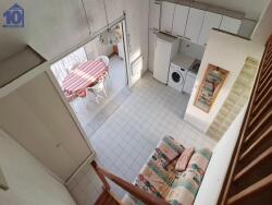 Appartement T3 vue mer, dans le secteur du casino, au dernier étage d'une résidence sécurisée avec ascenseur, de construction des années 1987, en bon état extérieur, des facades et coursives propres. L'appartement traversant offre une surface agréable comprenant un sas entrée desservant la piéce de vie avec son coin cuisine équipée; celle-ci donnant sur la loggia fermée avec vue sur la mer. Toujours au rez de chaussée une chambre en bas, une salle d'eau et son wc indépendant. A l'étage, une mezzanine servant de 2ème chambre avec un couchage en 140 cm et un lit en 90cm.