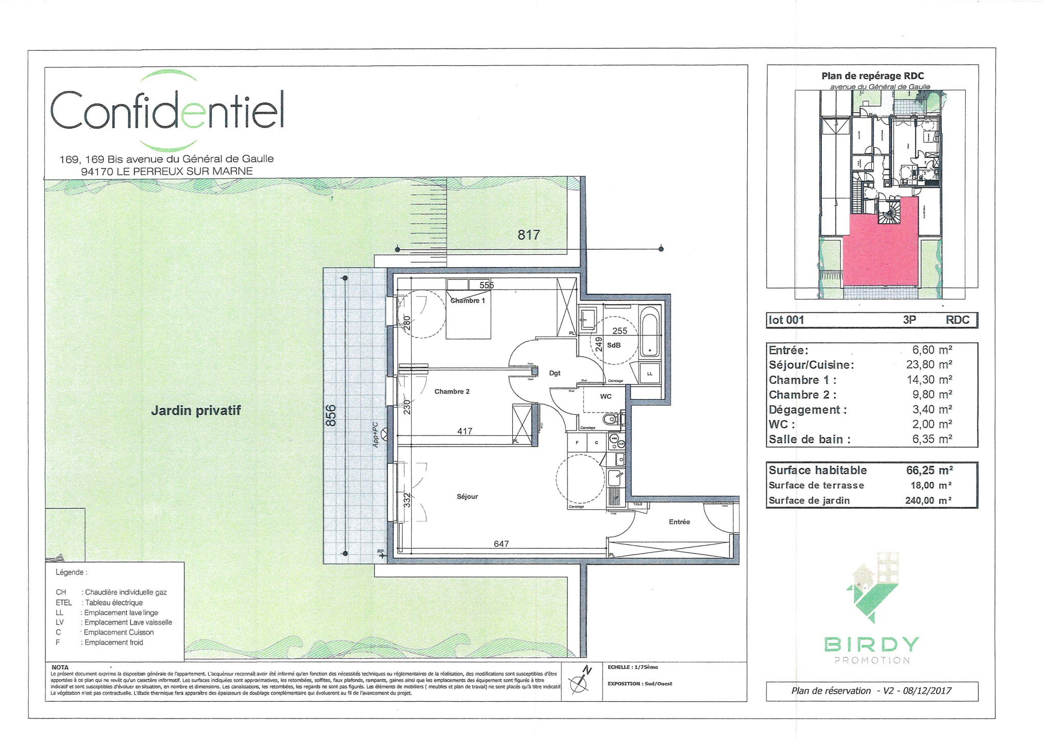 Appartement en RDC de 3 pièces 169 Avenue du Général de Gaul