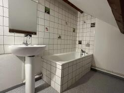 au 2ème étage : l'espace chambre mansardé, une salle de bains avec WC