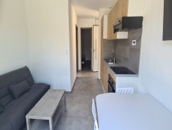 Appartement meublé de type F2 de 35 m2 situé route du calvaire, à 5 minutes de l'IUT. Au 1er étage d'un immeuble en R + 1, il est composé d'une pièce principale avec espace kitchenette équipée, un espace salon, une belle terrasse, une salle d'eau avec wc et une chambre avec placards de rangement. Climatisation réversible et grande terrasse. Disponible à la location et à louer à l'année complète. Loyer hors charges : 670 EUR Honoraires d'agence: 300 EUR