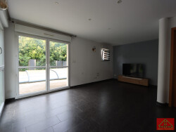 On découvre cet appartement Duplex de 83.28 m² en retrait de route à Knoeringue. L'entrée avec WC, lave-mains et rangement sous l'escalier nous invite vers cette pièce de vie confortable et lumineuse. La cuisine équipée fonctionnelle est ouverte sur le salon/séjour avec accès vers une terrasse généreuse. On est séduit par la tranquillité où l'on profitera d'une piscine avec dôme sans vis-à-vis. L'étage dessert 3 chambres ainsi qu'une salle d'eau équipée. Dans une ambiance épurée, elle révèle un meuble avec vasque, une douche, un WC et un coin buanderie. Le niveau supérieur pourra être aménagé en chambre, salle de jeux, coin détente selon les besoins. Spacieux garage fermé, place de parking couvert, adoucisseur, moustiquaires, pas de charges de copropriété. Rapidement sous le charme de cet intérieur contemporain, on est également séduit par l'extérieur dans cet environnement calme.