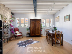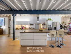 Idéalement situé en deuxième ligne des quais de Saône, à proximité immédiate des 1er et 5ème arrondissements, cet appartement de 222 m² occupe le troisième étage avec ascenseur d'un immeuble au passé industriel. Traversant et bénéficiant d'une rénovation contemporaine soignée, ce bien offre une atmosphère intimiste rare, au calme absolu et sans aucun vis-à-vis. Dès l'entrée, le caractère unique du lieu se dévoile : les volumes généreux sont sublimés par des poutres IPN apparentes, témoins de l'histoire du bâtiment, qui s'harmonisent parfaitement avec une décoration chaleureuse. Véritable coeur de l'appartement, la pièce de vie spectaculaire de plus de 100 m² s'articule autour d'une cuisine ouverte aux prestations de qualité. Cet espace de réception dessert d'un côté un vaste salon avec vue apaisante sur la verdure de la balme, et de l'autre une salle à manger profitant du soleil du matin. Pour le confort du quotidien, cette zone jour intègre également un vestiaire, un espace buanderie, de nombreux rangements et des toilettes invités. L'espace nuit a été intelligemment pensé pour garantir l'intimité de chaque membre de la famille. Réparties aux extrémités de l'appartement, les chambres sont accessibles par des entrées discrètement dissimulées. La suite parentale, véritable appartement dans l'appartement, dispose de nombreux rangements sur mesure type dressing, de toilettes privatifs et d'une salle de bains complète avec baignoire, douche et double vasque. Les 2 autres chambres de 21 et 19 m2 ne sont pas en reste bénéficient chacune de leurs propres rangements et point d'eau, complétées par un troisième WC. Enfin, atout charme indéniable, un large bureau aménagé sous verrière offre un espace inspirant et modulable, pouvant aisément servir d'atelier d'artiste ou de chambre d'amis selon les besoins. Possibilité d'acquérir en plus un garage fermé pratique et à proximité directe. Bien soumis au statut de la copropriété : 33 lots Pas de procédures en cours. Charges annuelles : 4300 euros (chauffage collectif performant compris dans ces charges) Proximité Bus C14, 2, 19, 31, 45 Proximité Métro ligne D arrêt "Valmy" à 5 min CLASSE ÉNERGIE : C / CLASSE CLIMAT : C Montant moyen estimé des dépenses annuelles d'énergie pour un usage standard : entre 2690 euros et 3690 euros Contact : Céline - 06 75 44 67 18 Copropriété de 66 lots - dont 33 lots habitation. (Pas de procédure en cours). Charges annuelles : 4300 euros. Celine KANNENGIESSER (EI) Agent Commercial - Numéro RSAC : 949 658 371 - LYON.