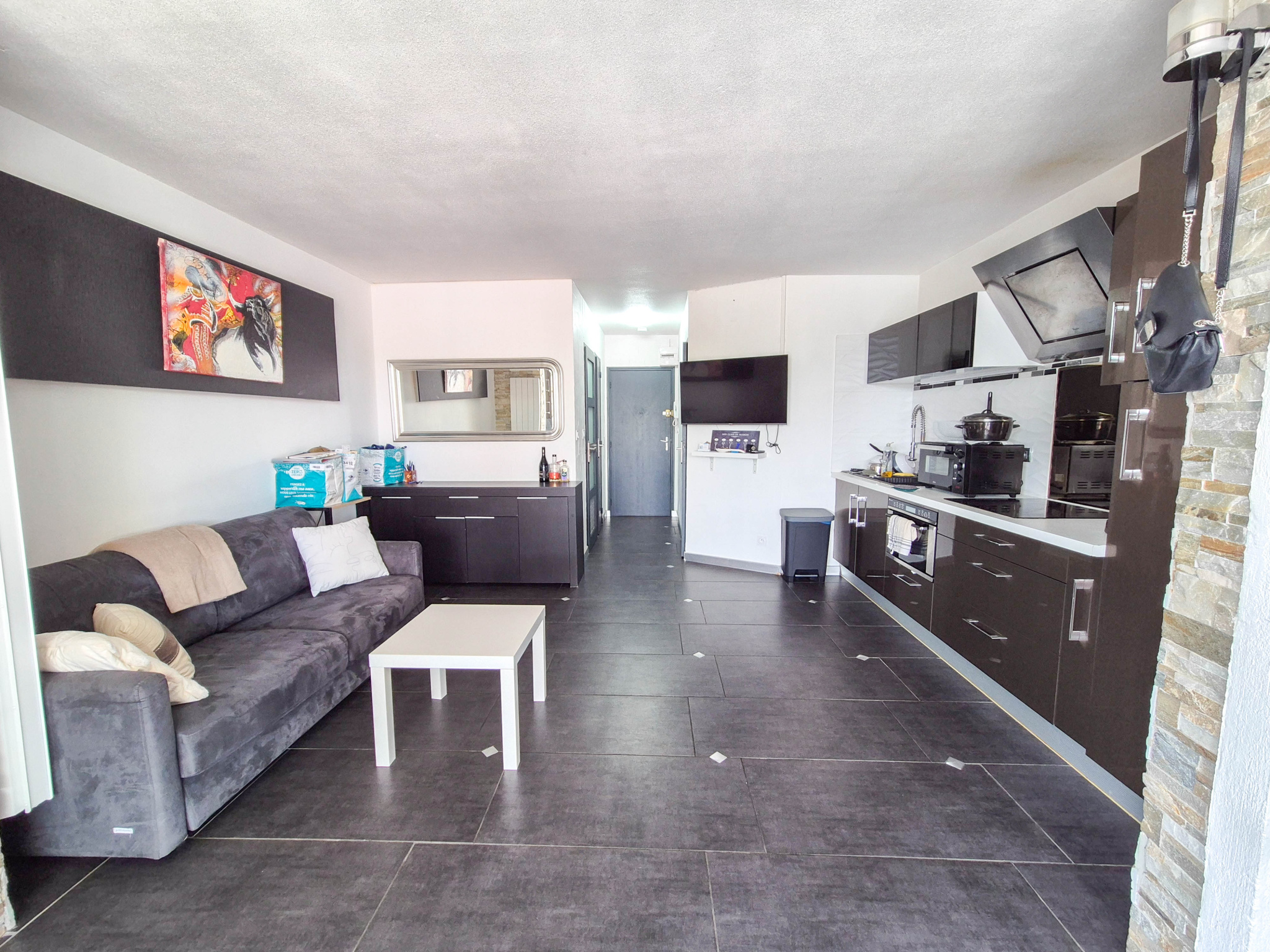 Pofiterez d'un emplacement privilégié, au coeur même de la station, à deux pas des commerces, du port de plaisance et à seulement 900 mètres de la plage. Situé au 1er étage avec ascenseur, ce studio s'ouvre sur un espace nuit équipé d'un canapé convertible pour deux personnes. La pièce de vie elle aussi equiper d'un canapé convertible, exposée plein sud, offre une luminosité remarquable et donne accès à un balcon de 5 m2, idéal pour profiter du soleil méditerranéen. Sa cuisine ouverte apporte une atmosphère conviviale et fonctionnelle à l'ensemble. Les atouts du bien :