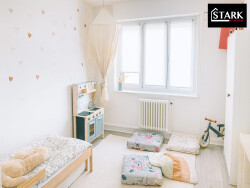 Trois chambres dont une pour bébé de 7,6 m2 Salle d'eau et WC séparé L'ensemble bénéficie de menuiseries PVC double vitrage, assurant un confort thermique et acoustique optimal.