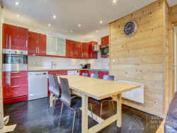 D'une surface d'environ 60 m², l'appartement dispose d'un espace de vie lumineux et spacieux avec cuisine ouverte. De grandes fenêtres avec balconnets de type Juliette offrent une vue dégagée sur l'ensemble de la station et apportent une belle luminosité tout au long de la journée.