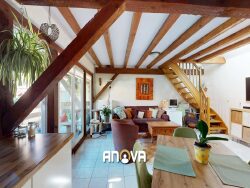 Ce bien atypique vous séduira par son ambiance chaleureuse, ses poutres apparentes et ses volumes bien pensés.