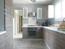 Entrée avec placard, séjour, cuisine aménagée/équipée, deux chambres, buanderie, salle de bains et WC.