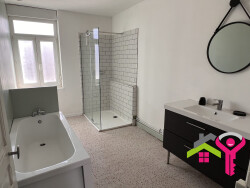 Situé au premier étage, cet appartement à la décoration moderne se compose d'un couloir qui distribue un séjour lumineux avec une partie salon avec une banquette et une table basse, une partie salle-à-manger une table, quatre chaises et un buffet. Vous disposerez d'une cuisine entièrement équipée avec de nombreux rangements, une plaque de cuisson, un four, une hotte, un lave-vaisselle et un réfrigérateur. Toute la vaisselle et ustensiles de cuisine sont neufs et disponible. La chambre dispose d'un lit double avec une literie neuve et d'une grande armoire/dressing. La salle de bains est spacieuse avec une douche, une baignoire et un meuble vasque.