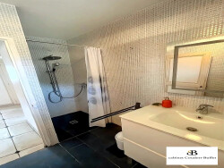 Appartement meublé de plain-pied comprenant une entrée, une cuisine entièrement équipée ouverte sur le séjour-salon, un couloir, deux chambres, une salle d'eau et un wc séparé. Chauffage gaz