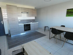 libre de suite . Bel appartement T2 MEUBLE entièrement neuf à louer au bord du Lot, proche commodités comprenant une pièce de vie avec une cuisine ouverte meublée et équipée (four, hotte, frigo avec congélateur, plaque vitrocéramique), un cellier, une chambre avec rangements et une salle d'eau avec WC. Entretien parties communes et taxe ordures ménagères dans les charges.