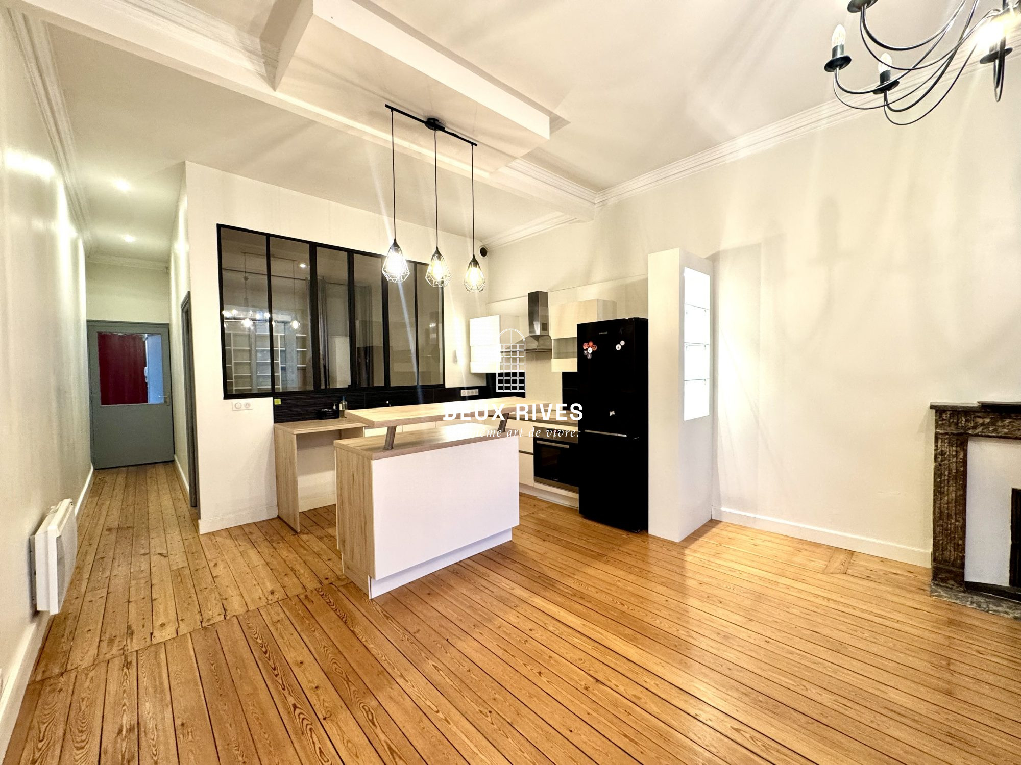- salon séjour sur parquet avec accès sur balcon (vue Château) - cuisine indépendante aménagée et équipée (vue Cathédrale) - deux chambres dont une avec petite salle d'eau attenante - salle de bains. - wc - cave.