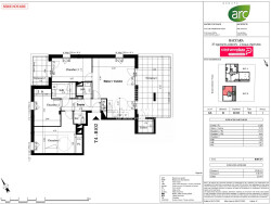 Un appartement de type 4 disposé comme suit : une entrée desservant un séjour / cuisine lumineux de 27 m² donnant sur une grande terrasse exposée SUD-EST (23 m²), un dégagement desservant 3 chambres (2 avec placards & 1 avec balcon) une salle de bain, une salle d'eau et des W.C. séparés.