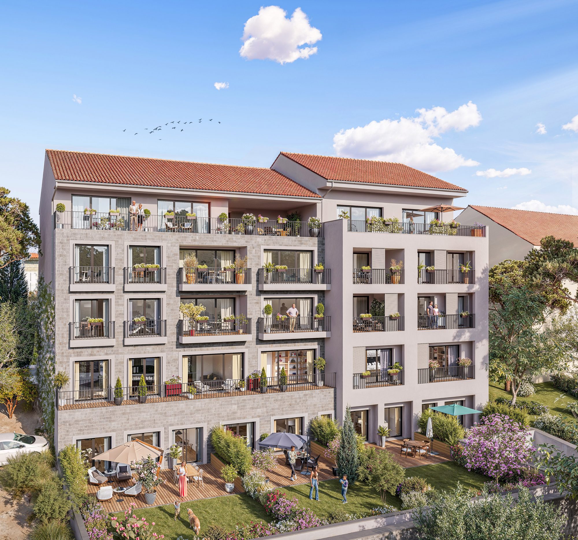 Idéalement situé entre le centre-ville (10 minutes à pied) et la périphérie avec toutes ses commodités : collège, supermarchés, pharmacie...la résidence fermée et sécurisée se situe dans un quartier agréable et recherché. À terme, elle comprendra 26 copropriétaires répartis en 3 bâtiments de 2 étages et dispose de nombreuses places de parking privatives et publics.