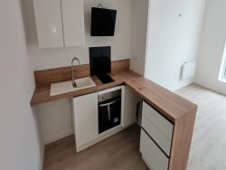 L'appartement est non meublé, offrant ainsi une toile blanche pour créer votre espace de vie idéal. Il comprend une cuisine aménagée et équipée, parfaite pour les amateurs de cuisine, ainsi qu'une salle de bains moderne et un WC séparé. La chambre spacieuse et lumineuse invite à la détente, tandis que le coin cuisine intégré offre une solution pratique pour les repas quotidiens.