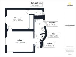 L'agencement comprend un séjour spacieux, une chambre, une cuisine séparée, une salle de bains et des toilettes indépendantes, sans espace perdu. L'appartement est traversant, offrant ainsi une excellente circulation de l'air. Le chauffage et l'eau chaude sont assurés par un système électrique.