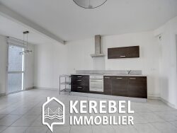 NOUVEAUTÉ KEREBEL IMMOBILIER PLOUGASTEL : En plein centre, au 1er étage d'une résidence de 2009, bel appartement T3 d'environ 70 m². Composé d'une entrée avec placard, une cuisine aménagée semi-équipée ouverte sur le salon-séjour donnant sur une terrasse, un cellier, 2 chambres avec placards, une salle de bains. Une cave. Deux places de parking. Posez vos meubles !