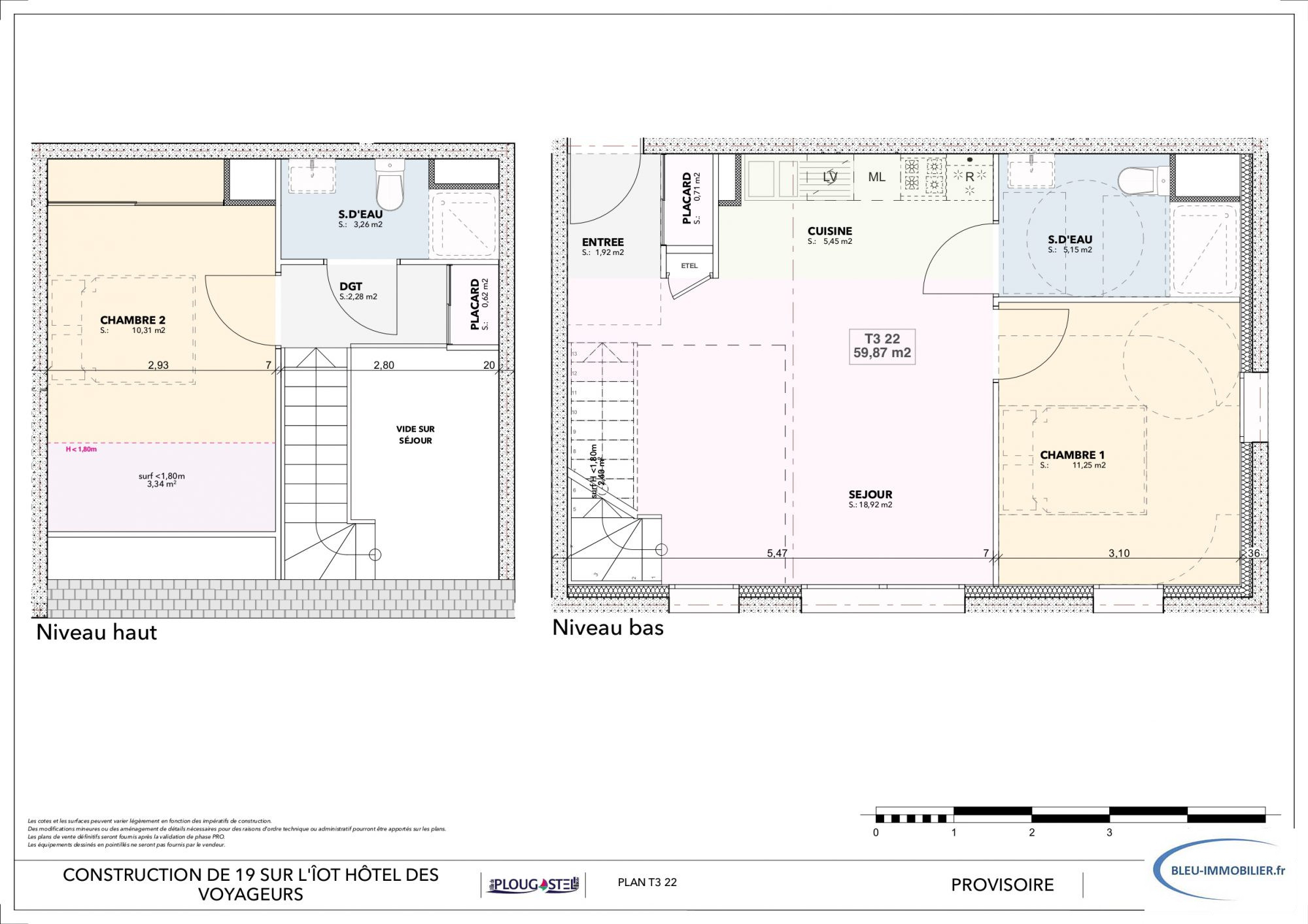 Cinq appartements de type T3, de 61.37m² à 73.89m² , composés d'une entrée, d'un cellier, un séjour-cuisine, deux chambres, une SDE et WC. (290 000 euros à 315 000 euros).