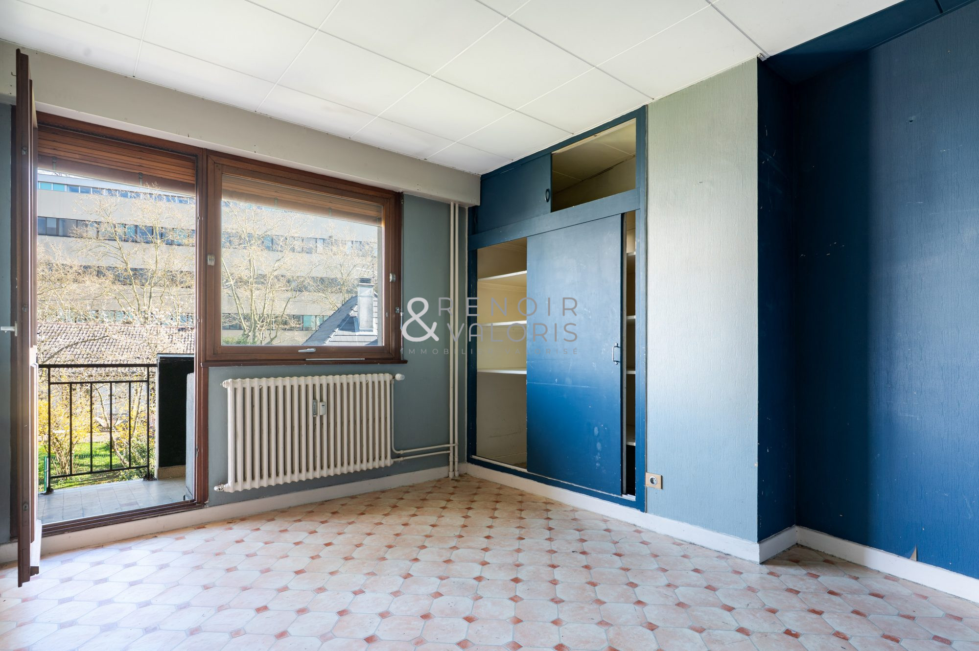 L'appartement se compose d'une vaste entrée, d'un salon-séjour lumineux de 29m², d'une cuisine indépendante, de deux chambres et un bureau, d'une salle de bains avec WC et d'un cellier. Confort assuré avec un chauffage individuel au gaz, fenêtres en double vitrage, volets roulants et persiennes.