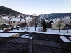appartement f3 avec balcon vue piste comprenant au rez de chaussée : entrée, cuisine ouverte sur séjour avec accès balcon, une chambre, un WC, salle d'eau deuxième étage, une chambre chauffage individuel électrique au sol