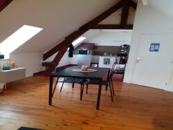 Un appartement comprenant: une pièce principale avec coin cuisine, chambre, salle de de douche avec wc.