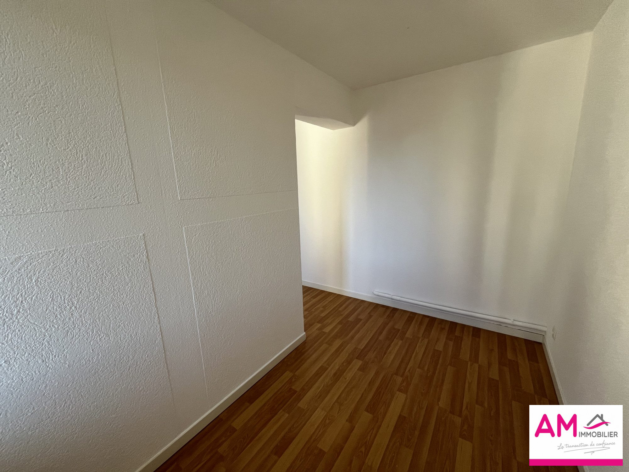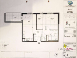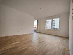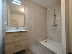Il se compose de la manière suivante, une entrée avec un placard intégré, un séjour de 22 m² ouvert sur un coin cuisine (devant être aménagé par le futur locataire) et avec une terrasse de 8m² orientée Sud/Ouest, deux chambres de 11 et 9 m², une belle salle d'eau avec un sèche serviette et un WC indépendant.