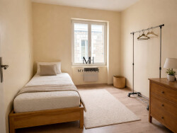 Il se compose d'une entrée, d'un salon-séjour ouvert sur une cuisine aménagée et équipée, de deux chambres ainsi que d'une salle d'eau avec wc.