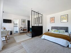 DEAUVILLE - RUE DES VILLAS - TERRASSE VUE MER - Dans un immeuble de standing avec gardien récemment ravalé, à quelques pas de la plage et non loin des commerces, appartement de type T2 avec terrasse vue mer de 14m². Cet appartement se compose d'une entrée avec pièce dressing, un large salon séjour avec accès terrasse, un coin nuit, une cuisine indépendante aménagée et équipée, une salle d'eau avec WC. A découvrir dès que possible !