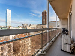 Au coeur du dynamique 3e arrondissement, à deux pas de la Part-Dieu et des halles Paul Bocuse, cet appartement de 87 m² situé au 8e étage sur 11 offre une lecture contemporaine de la vie citadine, portée par la lumière et une vue dégagée sur les toits lyonnais depuis un balcon filant agréable. La pièce de vie, ouverte et lumineuse, compose un espace convivial où séjour et cuisine dialoguent naturellement. Les larges ouvertures prolongent le regard vers l'extérieur et confèrent à l'ensemble une atmosphère apaisante, perchée au-dessus de l'effervescence urbaine. La partie nuit accueille deux chambres aux volumes équilibrés. Une salle de bains élégante et un WC séparé complètent l'agencement, pensé pour une circulation fluide et fonctionnelle. La copropriété sécurisée dispose d'un local vélo et d'une cave en annexe. Un stationnement peut être loué à proximité, un véritable atout dans ce secteur central. Coup de coeur pour cet appartement aux lignes épurées en plein coeur d'un quartier dynamique et recherché. Soumis au statut de la copropriété : 119 lots Charges annuelles : 3454 euros incluant chauffage et eau CLASSE ENERGIE : D / CLASSE CLIMAT : C Montant moyen estimé des dépenses annuelles d'énergie pour un usage standard, établi à partir des prix de l'énergie de l'année 2021 : entre 1430 et 1970 euros Contact : Guillaume - 06 67 69 73 00 Copropriété de 119 lots. Charges annuelles : 3454 euros. Guillaume Brun (EI) Agent Commercial - Numéro RSAC : 797 600 988 - Lyon.