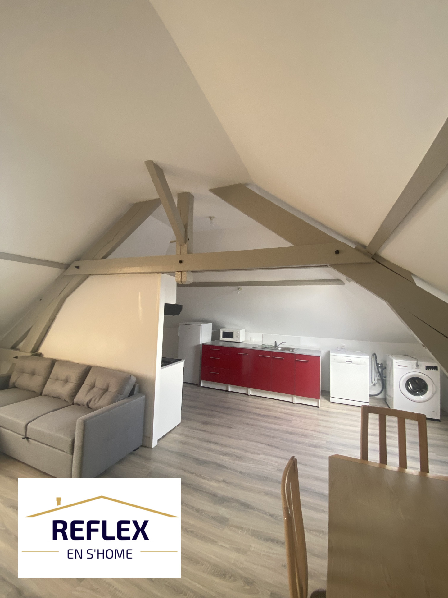 2ème étage comprenant entrée, séjour, cuisine US, 2 chambres en enfilades, salle de bains/wc. chauffage éléctrique.