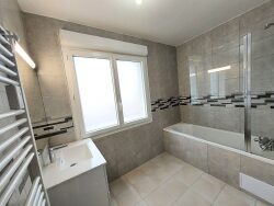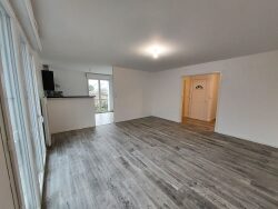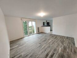 Appartement de type 4 au 1er étage comprenant : une entrée avec placards, une pièce de vie avec cuisine aménagée et équipée ( plaque de cuisson bouteille gaz et hotte) un cellier, 3 chambres dont une avec placard et une salle de bain et un WC. 2 Places de stationnement. Libre le 12/04/2026