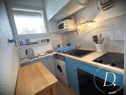 Au coeur de cet appartement, vous trouverez un séjour avec sa loggia, une cuisine aménagée et équipée, une chambre, une salle d'eau avec WC. Particularité, la possibilité d'une seconde chambre avec la mezzanine également présente.