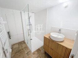 La pièce à vivre, baignée de lumière grâce à une triple exposition, vous accueille chaleureusement. Vous apprécierez sa cuisine ouverte, moderne et complètement équipée. À l'étage inférieur, retrouvez deux chambres confortables. Une salle de douche pratique, comprenant un lavabo et un coin buanderie, vous assure tout le confort nécessaire. Les WC sont séparés pour plus de commodité.