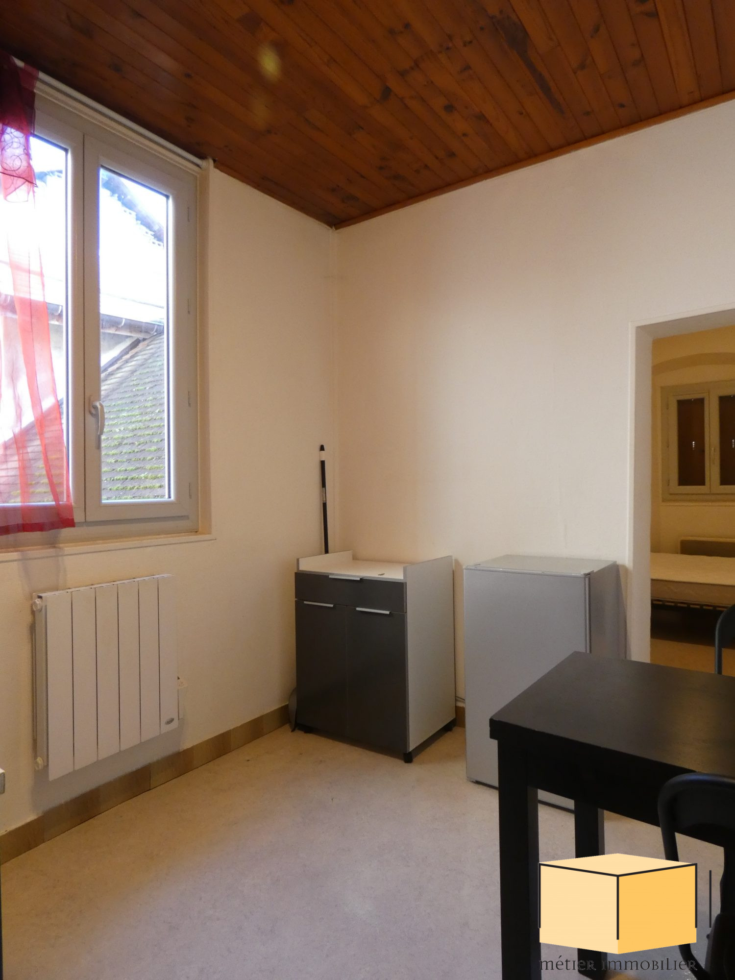 Belley à Louer un studio au 3° étage sans ascenseur offrant 15.66 m² habitables en combles avec une climatisation, comprenant une cuisine, coin séjour chambre, une salle d'eau et WC. Chauffage individuel au gaz. Loyer : 355 , dont 15 de provision sur charge. Dépôt de garantie : 340 , Honoraires d'agence TTC : 134,32 à la charge du locataire (dont 31 de frais d'état des lieux TTC) Réf : 6060