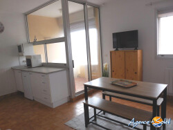 En 1er étage, appartement T1 très lumineux. Il comprend une pièce de vie avec un coin cuisine équipée donnant sur la terrasse, une alcôve pour la chambre et une salle d'eau avec douche, wc et fenêtre. Exposé plein sud, la mer à 200 mètres et les commerces au bout de la rue, il est idéal pour les vacances. Pour tout complément d'information, contactez Cécile NOGIER au 06.14.07.32.09 ou au 04.68.48.00.71. E-mail : vente.nogier@agencedusoleil.com