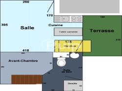 Les revêtements au sol sont du parquet flottant pour le séjour / cuisine et du balatome pour le reste.