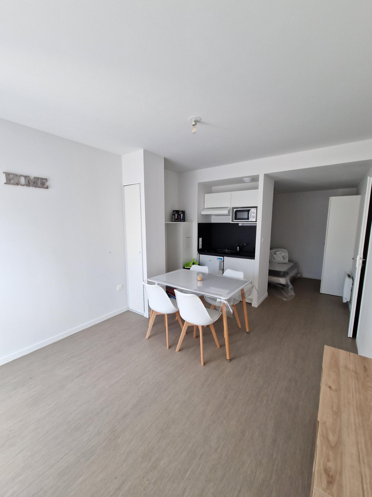Dans une résidence neuve proche Hyper U Les Herbiers, nous vous proposons un appartement de type 1 bis MEUBLÉ, comprenant : entrée avec coin cuisine aménagé et équipé (plaques de cuisson vitrocéramiques, hotte et réfrigérateur), grande pièce de vie, salle d'eau avec toilettes. Balcon et emplacement de parking aérien. Libre le 30/01/2026