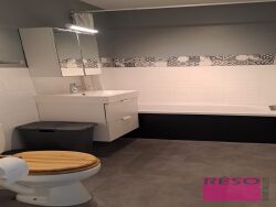 Vous apprécierez également la salle de bains moderne, bien agencée.