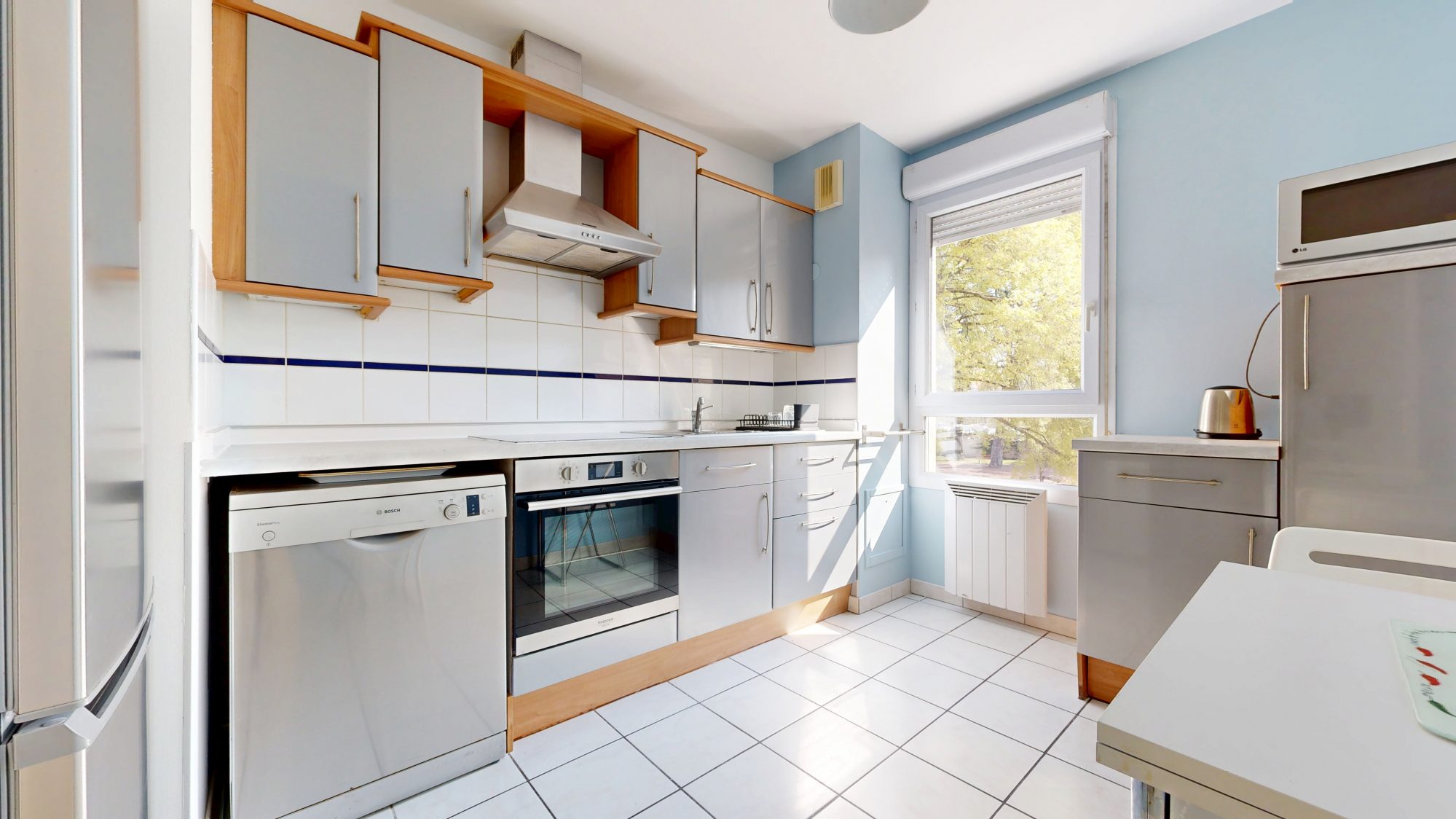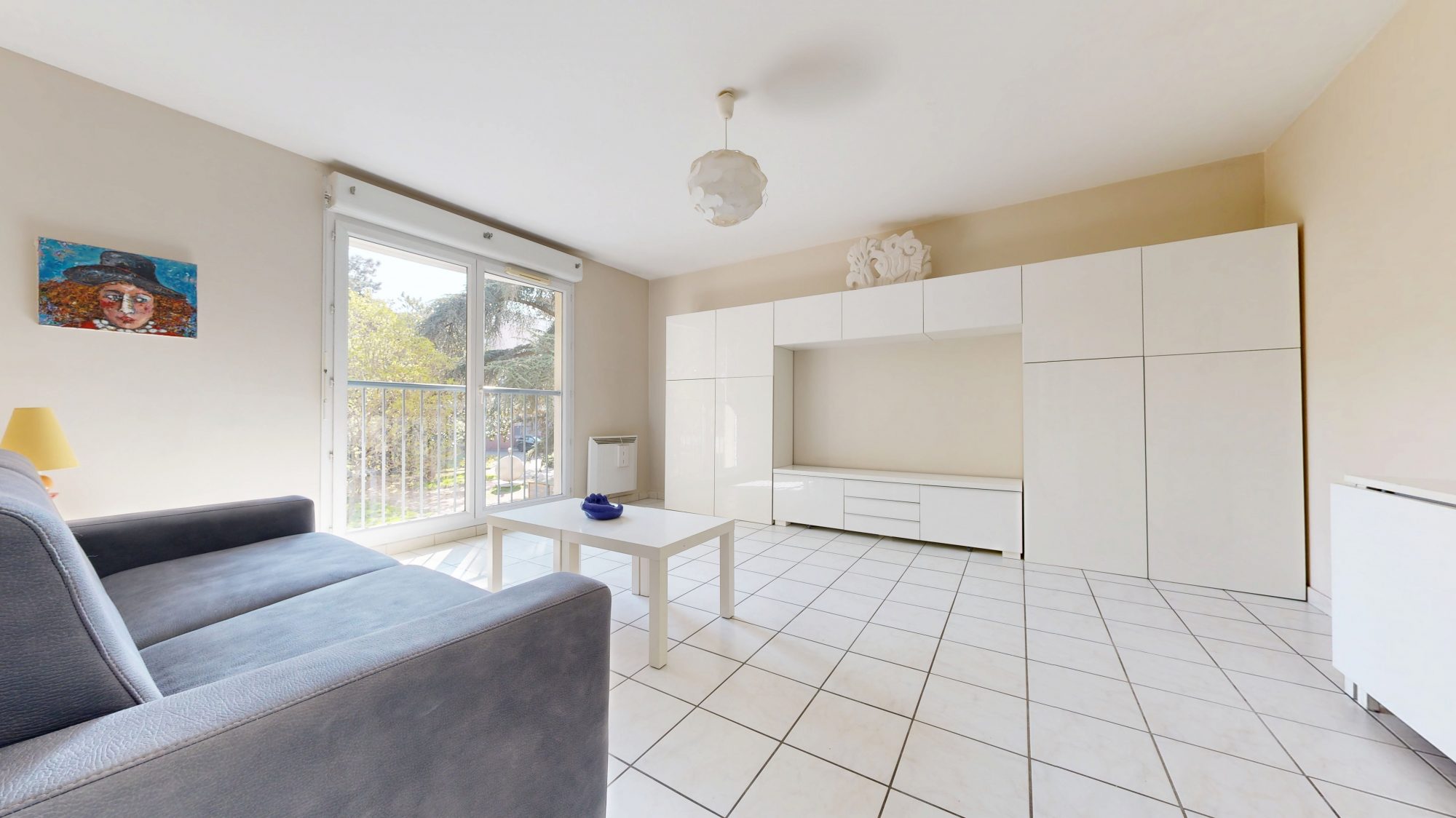 L'appartement se compose d'une pièce de vie avec cuisine ouverte, donnant accès à un balcon, d'une chambre spacieuse de 11,65 m², d'une grande salle de bains et d'un WC séparé.