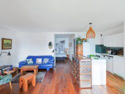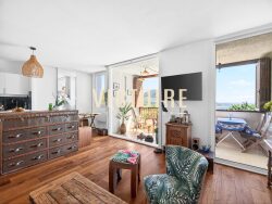 L'appartement se compose d'un grand séjour avec une cuisine ouverte et équipée, d'une chambre ouverte, d'une salle d'eau, d'un WC indépendant ainsi qu'une terrasse de 11m2 environ.