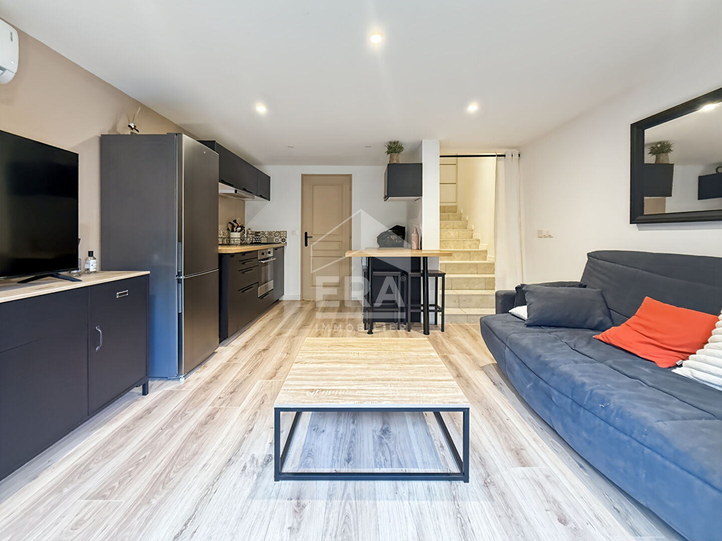 Il est composé d'un accès indépendant d'une cuisine ouverte sur le salon, une chambre et une chambre dans la mezzanine pouvant être transformée en bureau ou salle de jeux, une salle de bain avec WC. Les plus : accès indépendant, emplacement proche du port, façade refaite, pas de charge de copropriété.