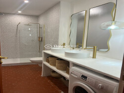La salle de bain, moderne et fonctionnelle, complète parfaitement cet intérieur. La hauteur sous plafond de 3 mètres apporte une sensation d'espace et de liberté. La parfaite isolation garantit une température agréable toute l'année, tandis que le chauffage individuel vous permet de réguler la température selon vos besoins.