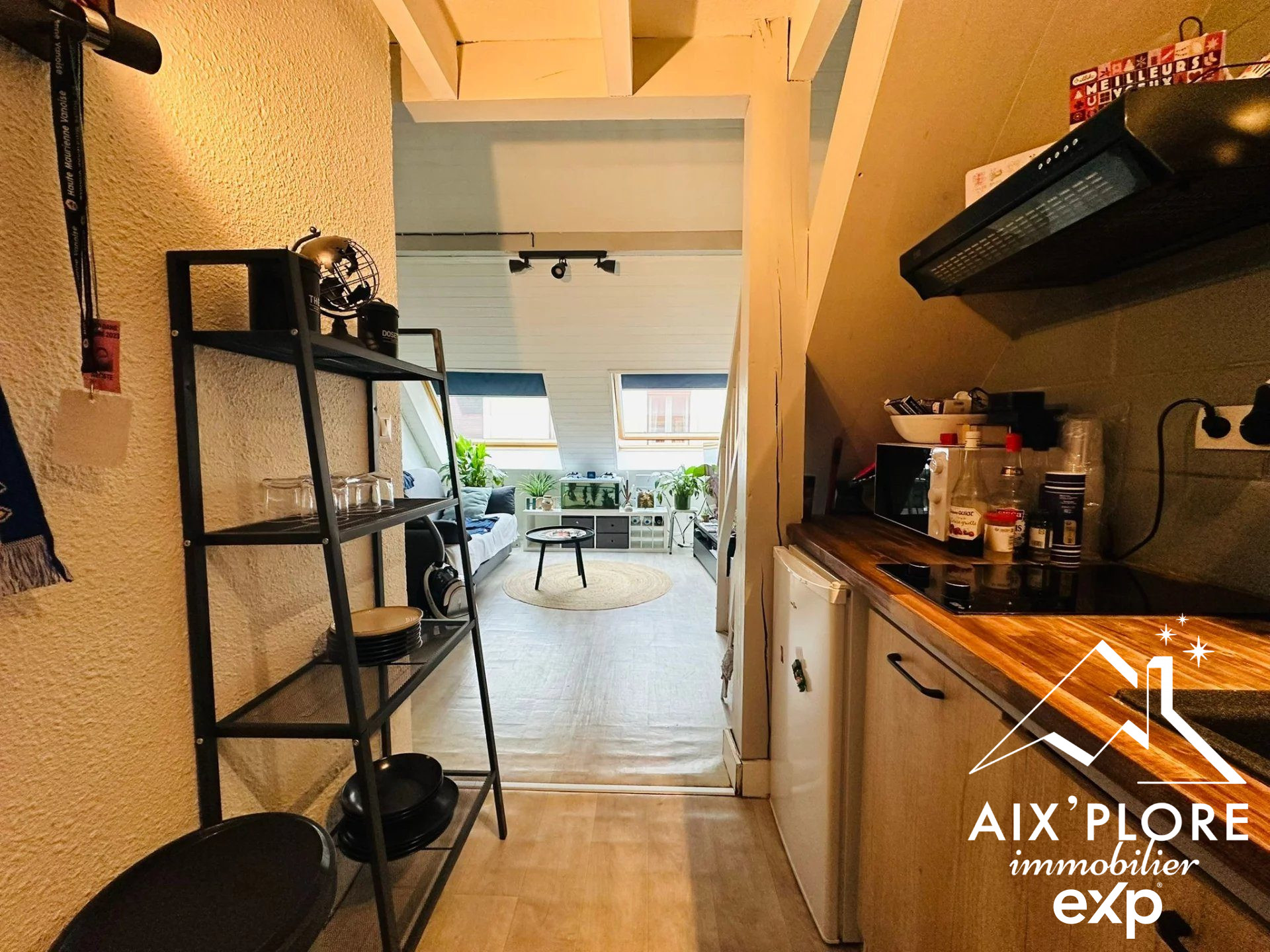 L'appartement se compose d'une pièce de vie de 23 m² avec cuisine équipée, d'un dégagement desservant une salle d'eau avec WC, ainsi que d'une chambre séparée. En annexe, le bien dispose également d'une cave.