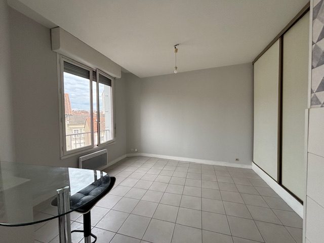 Appartement T2 non meublé comprenant une entrée desservant une pièce de vie lumineuse avec cellier et accès à la cuisine, une chambre, une salle de bain ainsi qu'un WC séparé. L'appartement dispose également d'un balcon et est équipé d'un chauffage électrique. 1er étage. Les menuiseries sont en cours de remplacement.