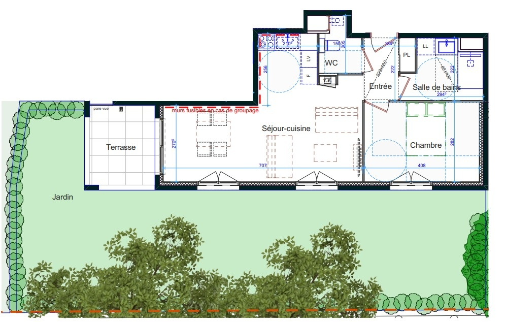 La résidence: Dans un environnement verdoyant, allant du T2 au T5 Duplex dans une petite copropriété de seulement 13 appartements. Vous apprécierez le confort d'un espace de vie, baigné de lumière naturelle. Profitez également de votre terrasse privée pour des moments de détente en plein air, ou rejoignez le toit-terrasse avec potager partagé pour cultiver des liens avec vos voisins. Cet immeuble de trois étages avec attique s'inscrit harmonieusement dans le paysage urbain. Chaque appartement estconçu avec des matériaux de qualité, alliant modernité, élégance et durabilité.
