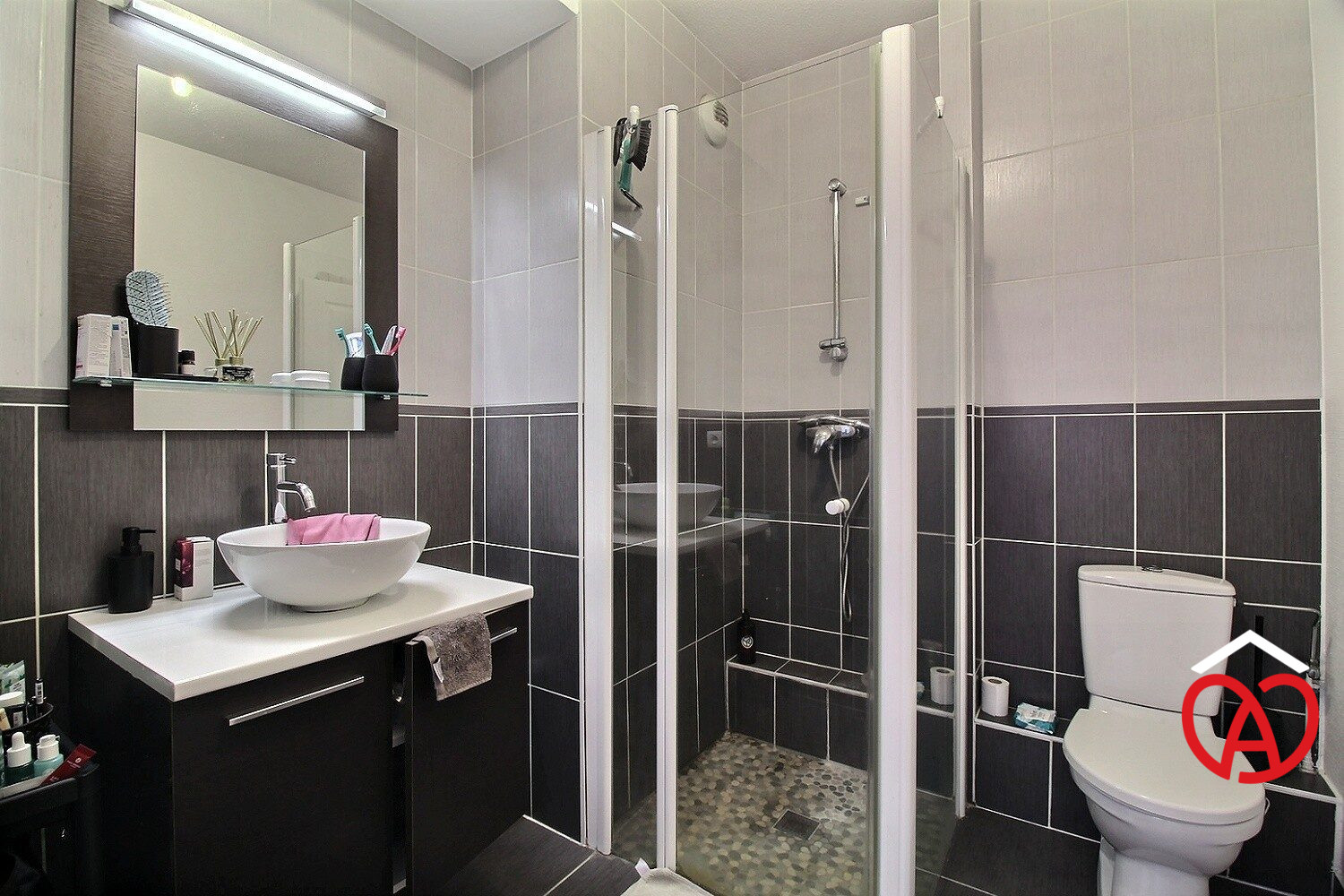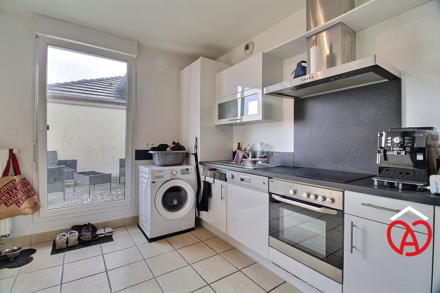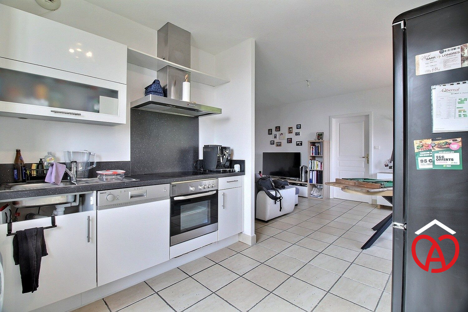 Un intérieur lumineux et bien agencé :L'appartement se compose de : une entrée ouvrant sur un vaste salon/séjour de 29 m² avec placard, un coin cuisine entièrement aménagé et équipé (four, plaque, hotte, lave-vaisselle, réfrigérateur et rangements), une chambre confortable, une salle d'eau moderne avec douche, meuble vasque, sèche-serviette et branchement pour machine à laver, un WC séparé.