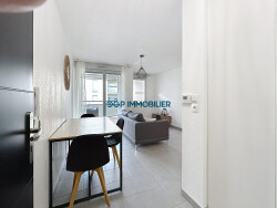- Une pièce de vie lumineuse avec accès terrasse équipée d'un canapé, table basse et meuble TV, table et chaises - Une cuisine équipée et aménagée ouverte sur le séjour avec frigo, micro-ondes, hotte et plaques inductions - Une chambre - Une salle d'eau avec WC