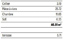 L'entrée mène à une belle pièce de vie avec cuisine ouverte de 26 m², lumineuse et conviviale, pensée comme le véritable coeur de l'appartement.Cet espace s'ouvre directement sur une terrasse de 6 m², idéale pour profiter d'un extérieur au quotidien. L'espace nuit se compose d'une chambre confortable de 12 m², offrant calme et intimité, ainsi que d'une salle d'eau et d'un cellier pour le rangement.