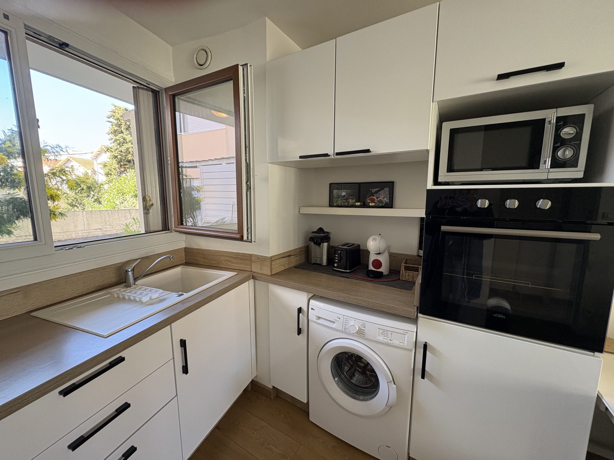 Le bien au premier étage se compose d'un séjour de 26 m² semi-ouvert sur une cuisine aménagée et équipée, d'une chambre, d'une salle d'eau, WC et d'une cave de 15 m².