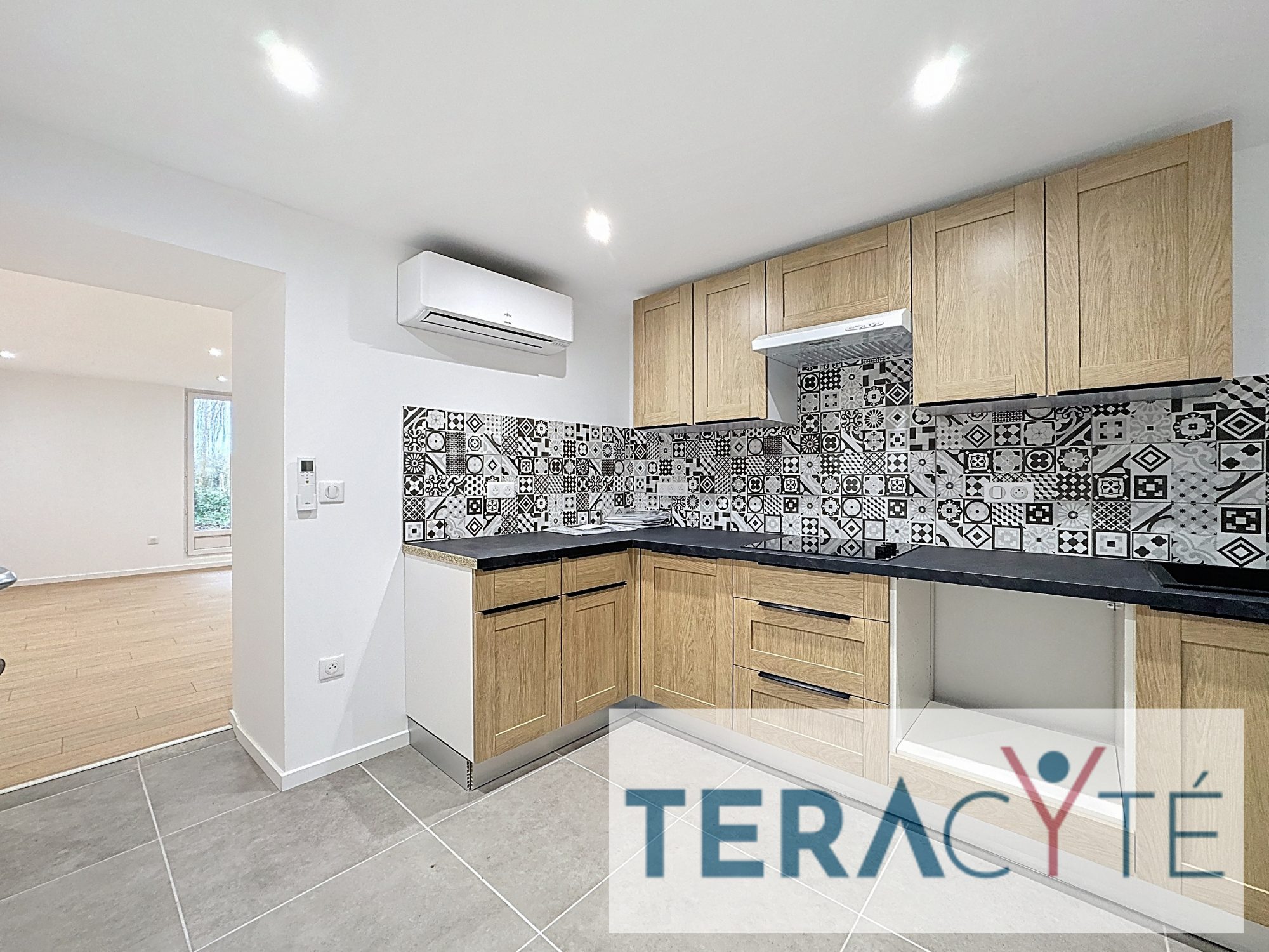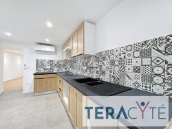 Un appartement en duplex d'environ 75m² au 2ème étage comprenant : une cuisine et un séjour, à l'étage, une chambre, un bureau et une salle de bains avec wc.