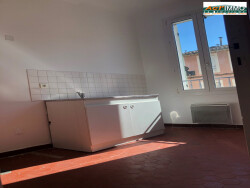 En centre-ville, au 1er étage sans ascenseur, un appartement de type 2 bis de 44.98m² comprenant : un séjour avec climatisation, une cuisine, une chambre, un bureau, une salle d'eau, et un WC séparé.